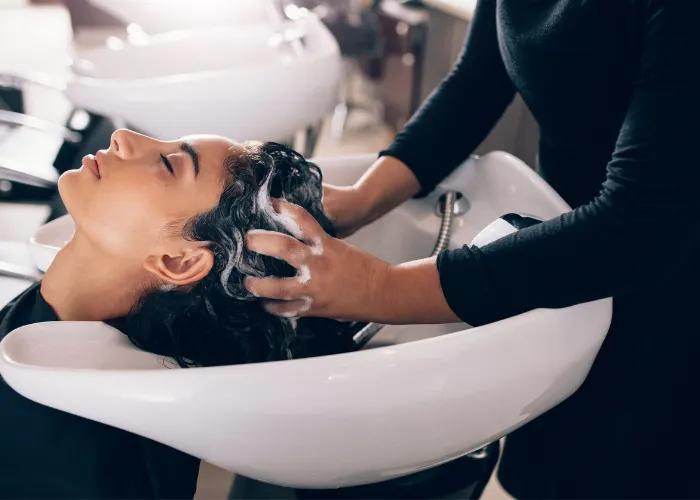Efter slingorna är det dags för en avkopplande hårtvätt. Här får du njuta av den varma, skummande massagen medan vi noggrant rengör ditt hår.
